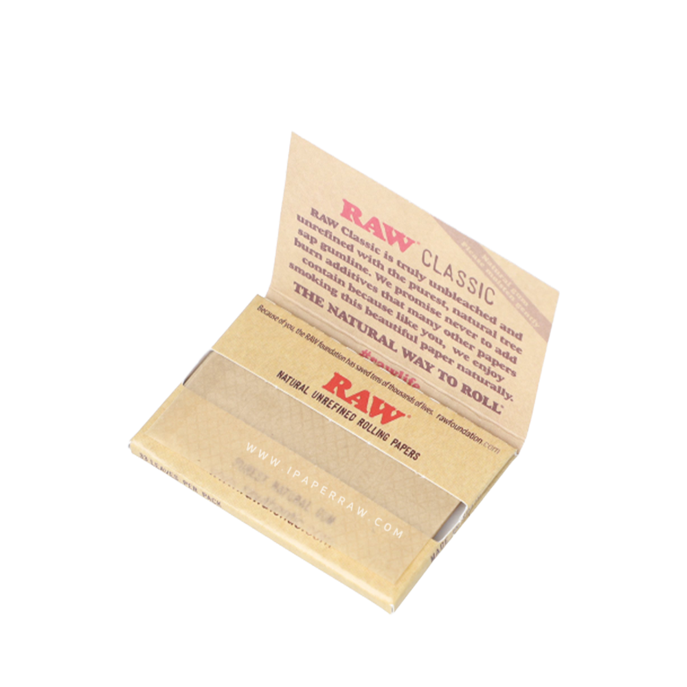 تُعد أوراق راو كلاسيك 1½ المصنوعة من ألياف نباتية غير مبيضة مع بصمة البخار المتقاطعة الخاصة بنا والتي تم تصميمها هندسيًا لمنع الجري وإنتاج ورق راو كلاسيك1½ نظيفًا ومتساويًا ،