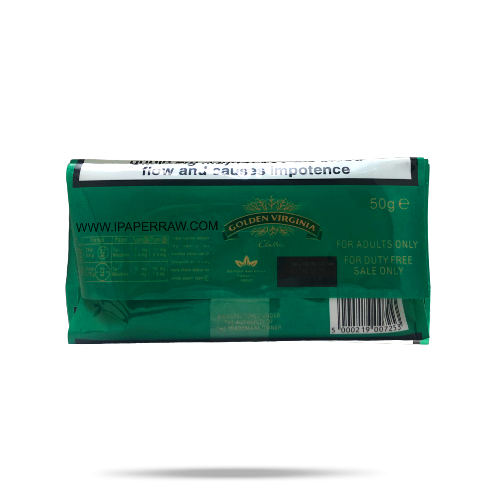 The premium quality Golden Virginia Green Original leaves are light brown fritters that are finely ground by hand or machine. It consists of a blend of selected high quality paper from the best growing regions. Additional flavor is dispensed in favor of a bouquet of premium notes. Cigarette smokers who want a balanced taste with a higher rich nicotine content prefer Golden Virginia Original in a soft-sealed 50g pack.